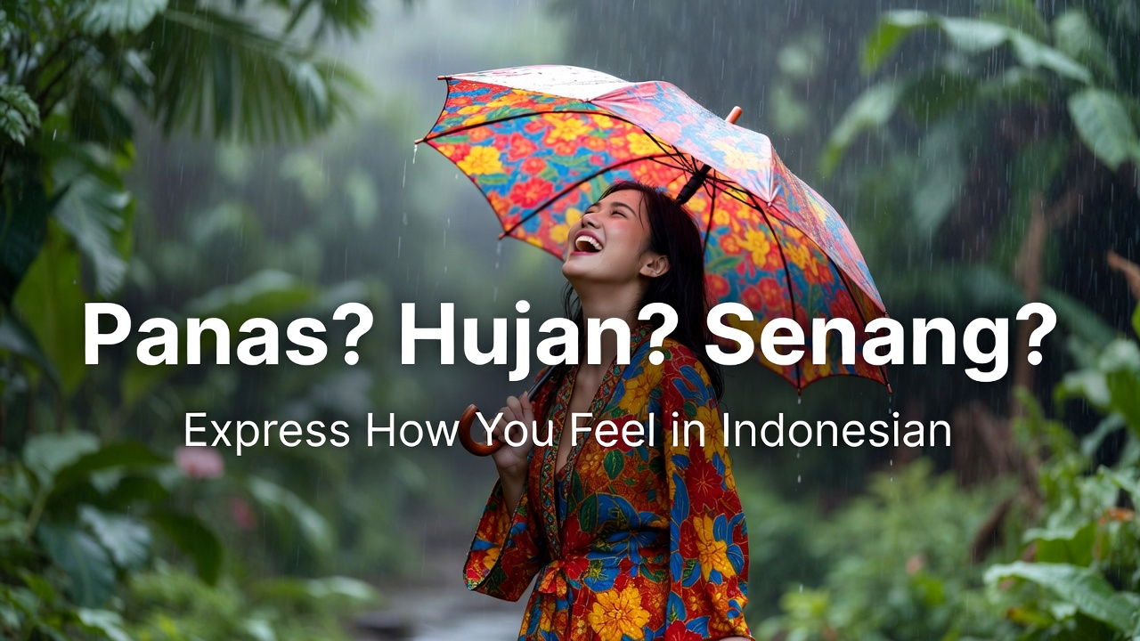 Learn to describe weather and emotions in Indonesian – from 'panas sekali!' (so hot!) to 'saya senang' (I'm happy). Esse...