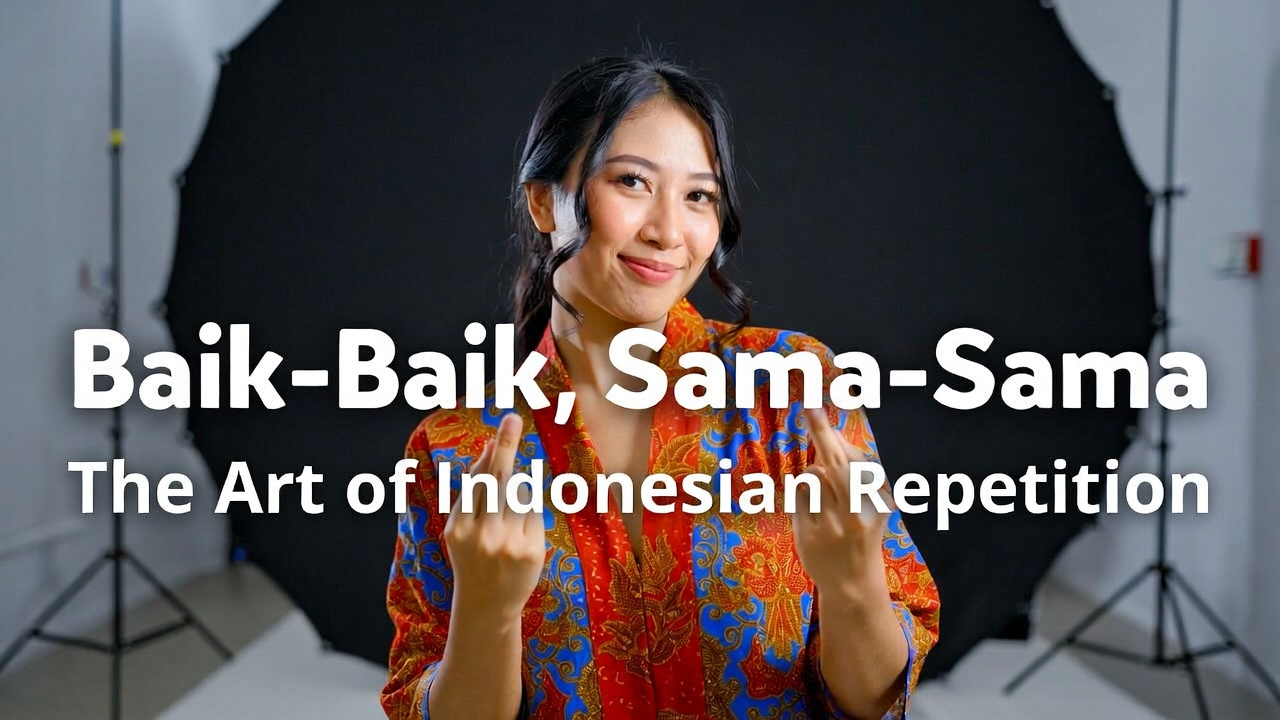 Discover the charming Indonesian grammar pattern of word repetition – from 'baik-baik' to 'hati-hati' to 'sama-sama.' Le...